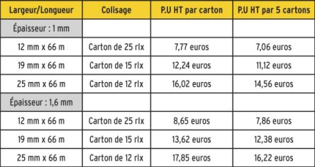 • Largeurs : 12, 19 et 25 mm - Longueur : 66 m