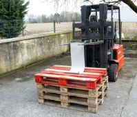 Test : Lever 4 palettes accrochées à la banderole soudée avec SOA 8721